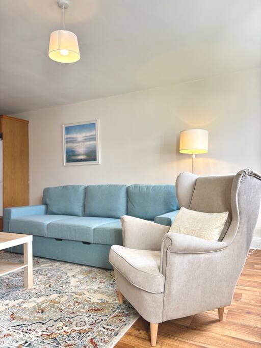 Relax in style at Harbour Haven Cobh: A bright two-bedroom apartment overlooking Cork Harbour and the spires of St Colman’s Cathedral. Fully-equipped kitchen, free dedicated parking, fast WiFi, and just a 5-minute stroll to the waterfront and nearby the train station.