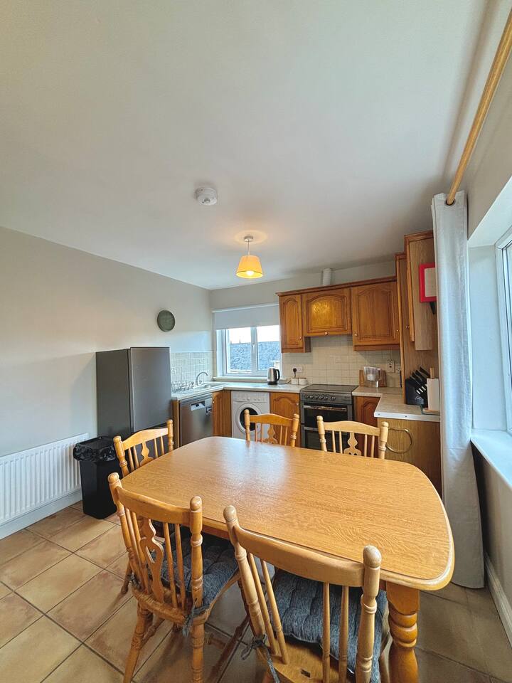 Our cozy apartment features 2 double beds and a sofa bed, perfect for families or groups. Relax with a smart TV, enjoy free and safe parking. With new furniture and a modern bathroom, you'll feel right at home. The fully stocked kitchen and ample dining space are ideal for enjoying meals together. Stay connected with fast WiFi and catch up on any work if needed, making it perfect for both leisure and business travelers. Book your stay now for a memorable and comfortable experience in beautiful Cobh!