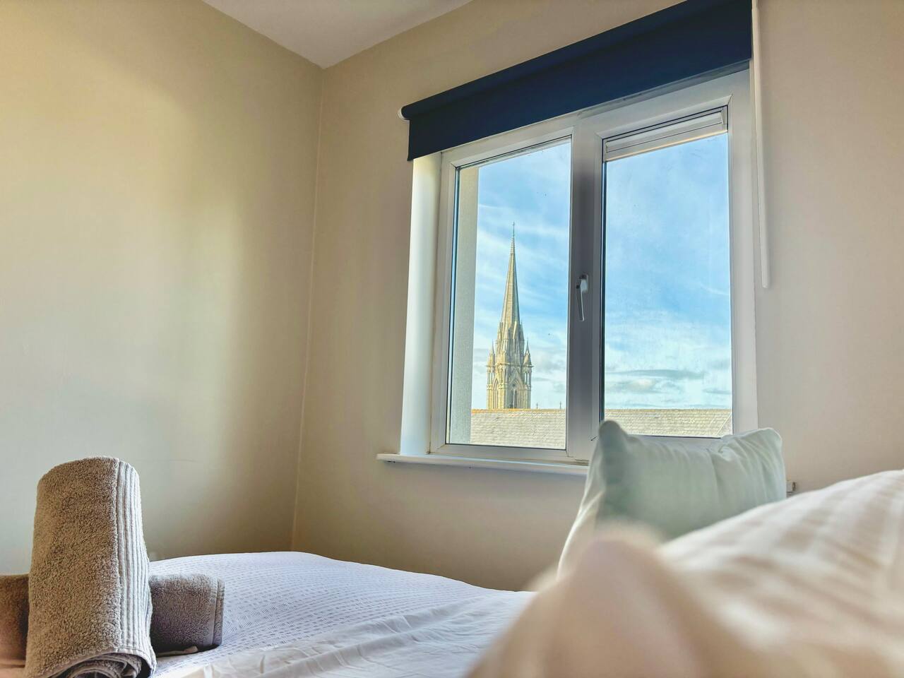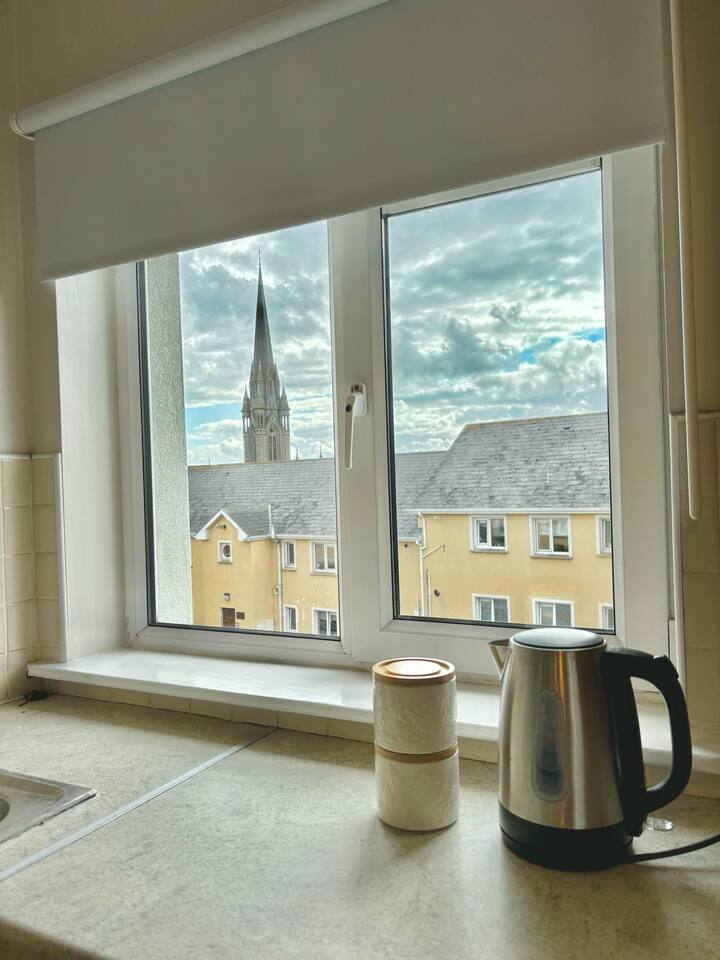 Catherdral Views | Trains Nearby | Free + Safe Parking | Fast Wifi Welcome to our serene seaside Airbnb overlooking a historic cathedral! A 10-minute walk to the train station to get to Cork City center quickly, we can accommodate up to 5 guests (2 doubles, 1 sofa bed). Enjoy cathedral views from the bedroom & kitchen or unwind in the living space with a good Netflix series. Our kitchen is well-equipped, with ample parking, making for easy exploration. Ideal for a memorable getaway.