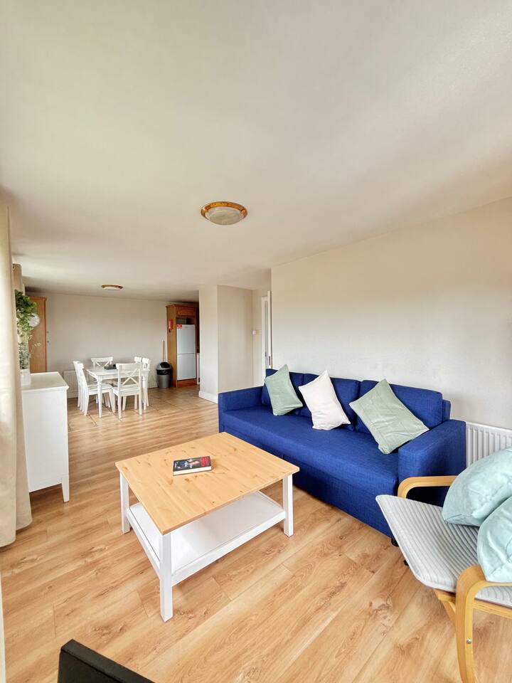 Welcome to our cozy apartment, a welcoming space for individuals, families, and groups alike. Have comfort with 2 queen beds and a sofa bed, unwind with a smart TV, and soak in the peaceful sea views. Feel right at home with fresh furniture and a newly renovated bathroom. Our fully equipped kitchen and spacious dining area invite memorable mealtime gatherings. Stay connected with fast WiFi, ideal for both leisure and work. Embrace comfort and convenience in picturesque Cobh – book now for an unforgettable stay!